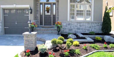 Retaining walls can be made from a number different materials such as concrete, field stones, natural stone boulders, large slabs, railroad ties and pre cast interlock. Not only do they look attractive, they are structurally sound and can also provide privacy. You can even use the retaining walls as feature walls by adding some focal points such as fountains, plants and lighting. A retaining wall made from natural stone materials provides structure all while camouflaging into your landscape contributing to a very natural and smooth finish.